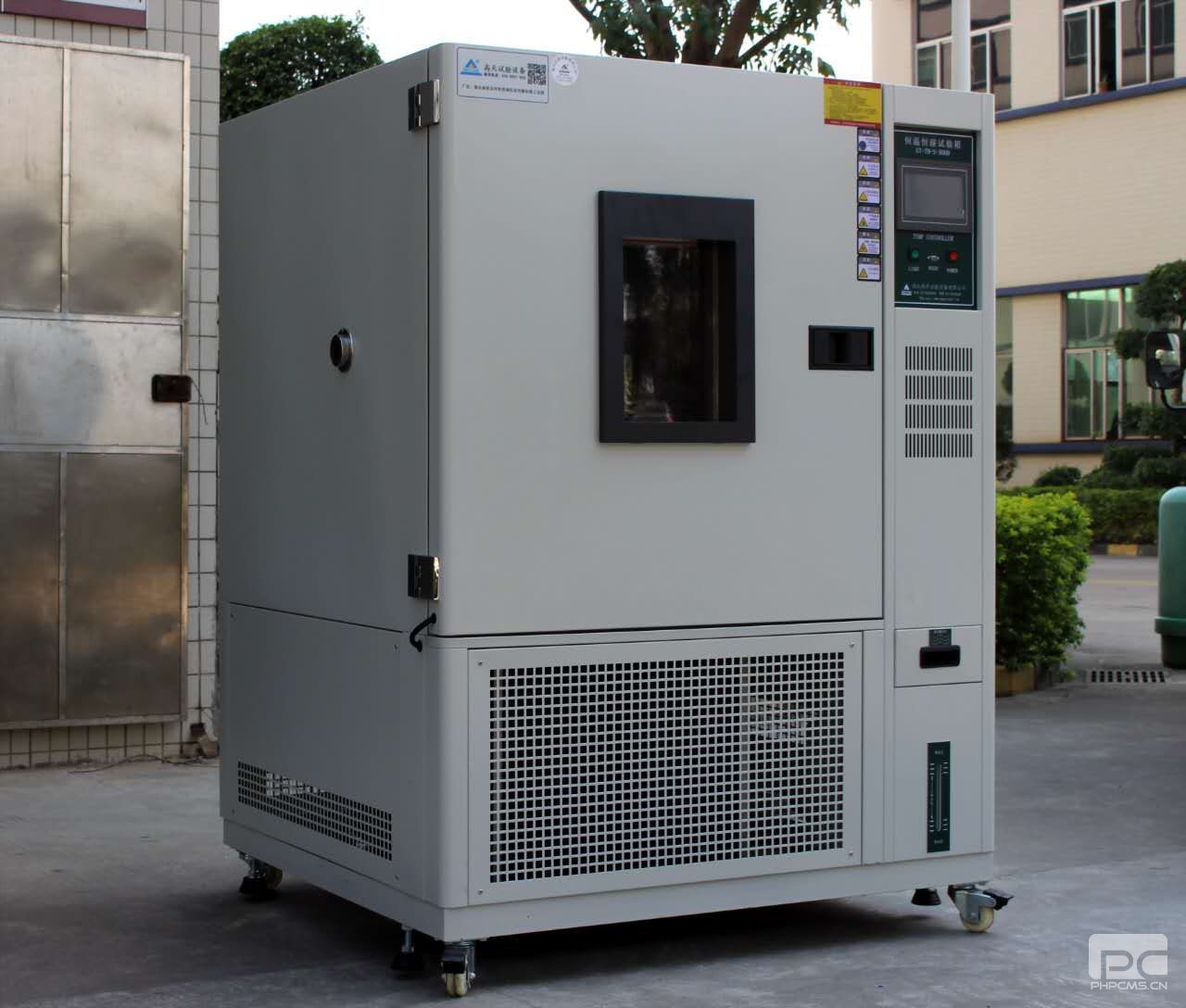 恒溫恒濕試驗箱加溫裝置是控制恒溫恒濕試驗箱是否升溫關鍵環節;當控制器得到升溫指令時會輸出電壓給繼電器,大約3-12伏直流電加在固態繼電器上面;它的交流端相當于導線接通;與此同時接觸器也吸合,加熱器兩端有電壓使其發熱,通過循環風機帶動把熱量帶到箱里,使恒溫恒濕試驗箱升溫,因此溫度就可以快速達到你設定的值;控制器通過加在固態繼電器通斷調節;我們在恒溫恒濕機看屏幕上加熱出力多少來調節發熱量;這是在89度以上溫度控制,在89度以下溫度穩定如何控制呢?恒溫恒濕試驗箱一邊通過固態繼電器發熱出力多少;另一邊通過壓縮機制冷循環降溫以達到動態平衡,溫度恒定。